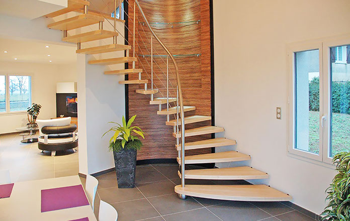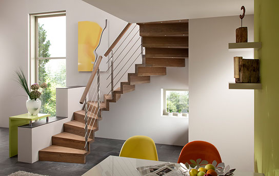 Die Bolzentreppe (Bolero) bietet eine große individuelle Gestaltungsfreiheit. Sie benötigt zur Stabilität kein Geländer (selbsttragende Treppe). Wenn Sie eine Treppe suchen, die optisch leicht wirkt, ist die Bolero-Serie die richtige Entscheidung. Bewährte Treppenbaukunst vereint sich mit modernen Konstruktionselementen.