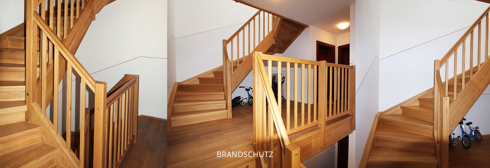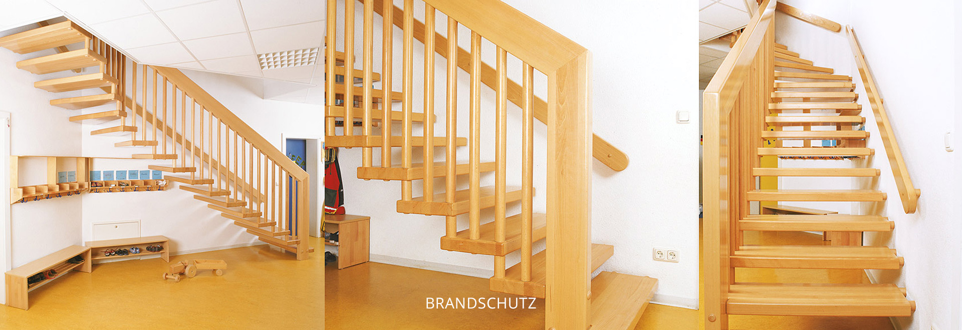 Bei der MPA Braunschweig durchgeführte Brandversuche bestätigen uns diese Konstruktion mit der Klassifizierung: "Nicht raumabschließende Holztreppen-Kon- struktion der Feuerwiderstandsklasse F 30 gemäß DIN 4102/2 bei mehrseitiger Brandbeanspruchung".